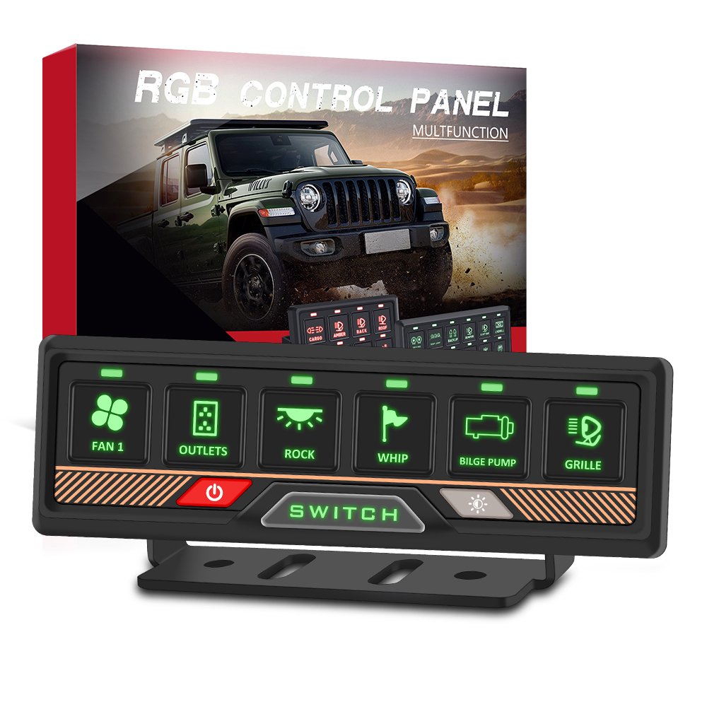 6 Gang RGB Switch Panel with Wired Controlfor 12V/24V Vehicles