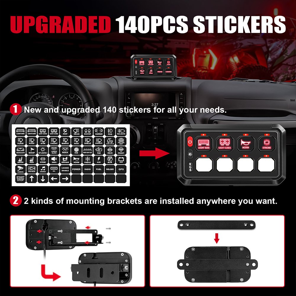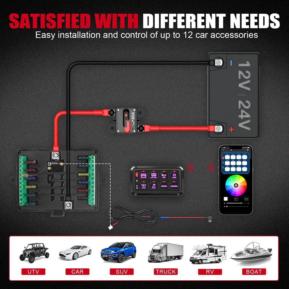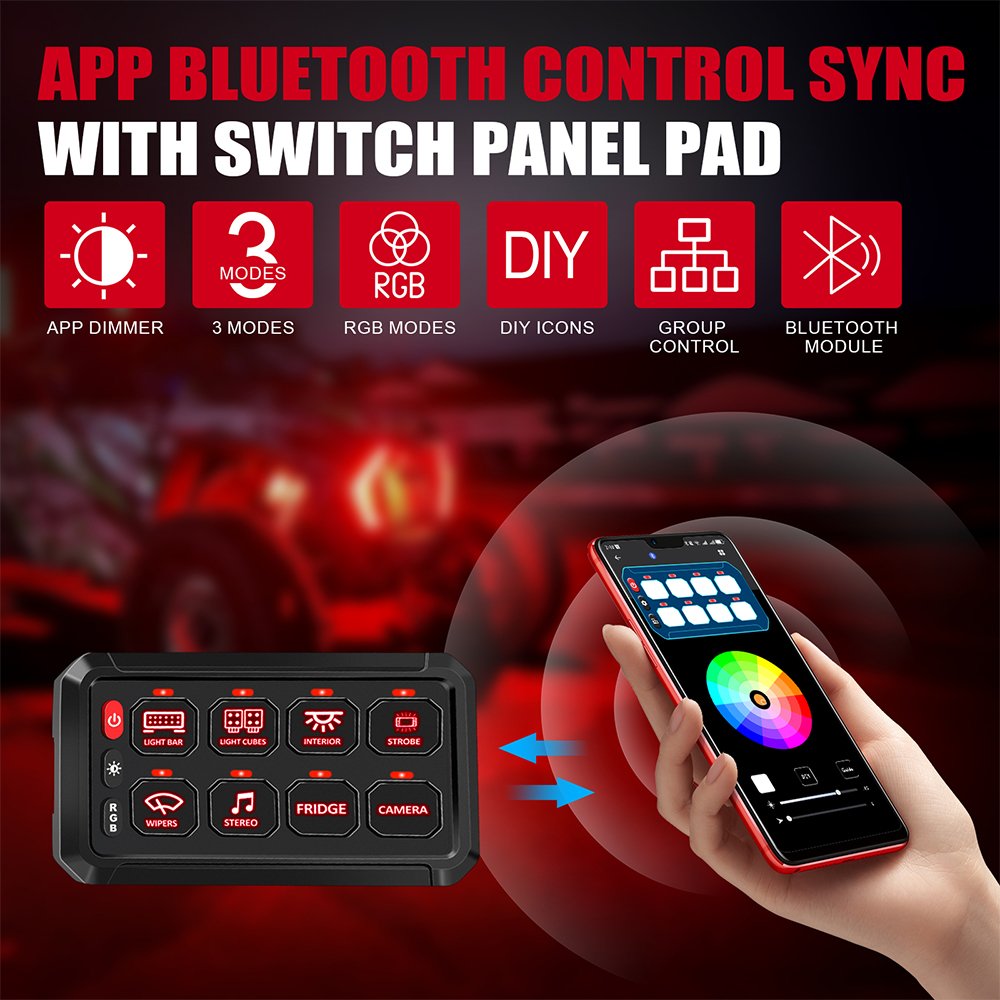 8 Gang APP Controlled RGB Switch Panel for 12V/24V Vehicles